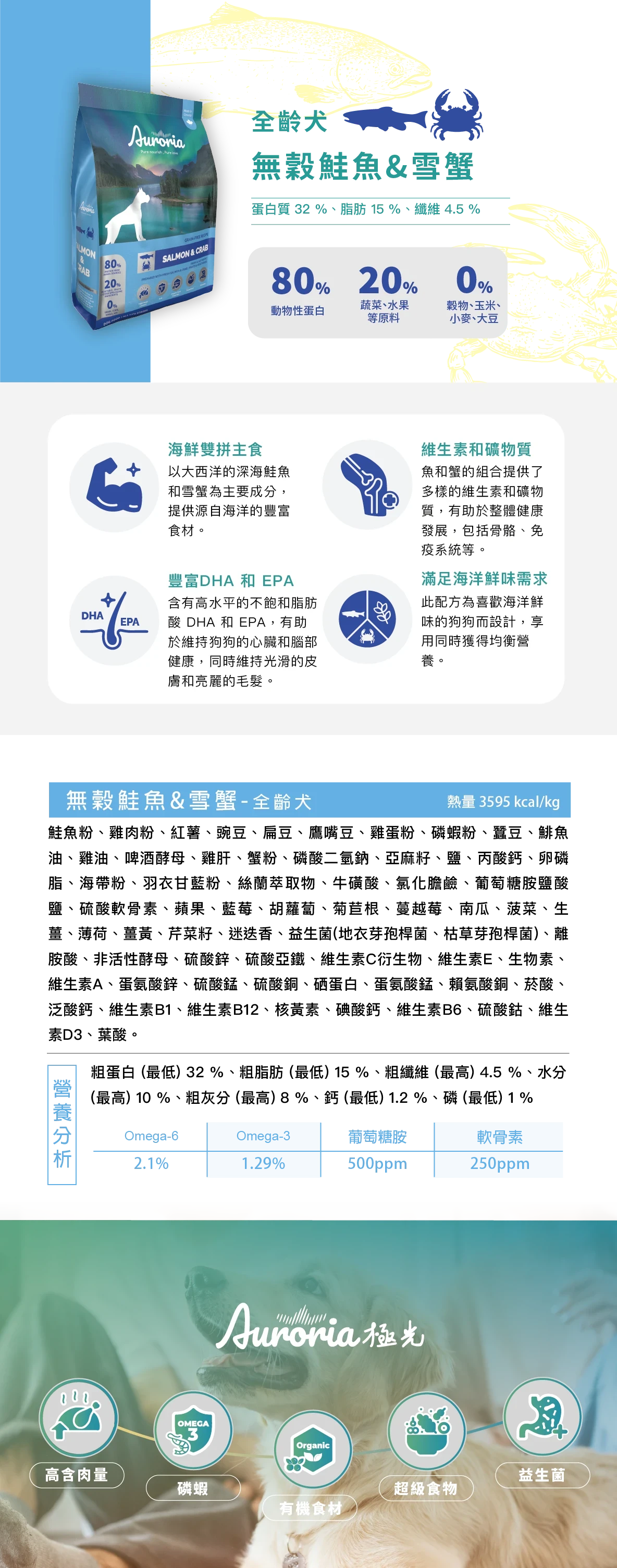 【AURORIA極光天然糧】無穀全齡犬 鮭魚&雪蟹