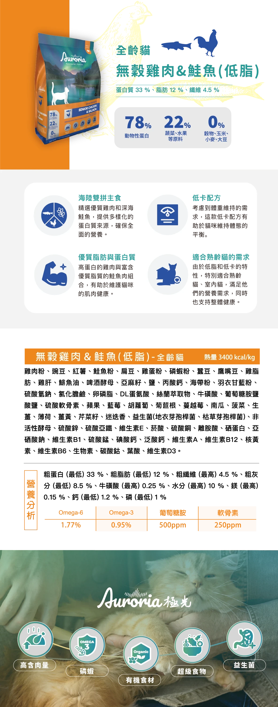 【極光Auroria】全齡貓 無穀雞肉&鮭魚(低脂)4lbs/1.81kg