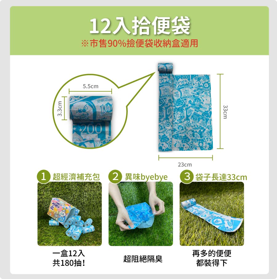【臭味滾】拾便袋 1盒(共180張)環保材質 易撕設計 外出必備