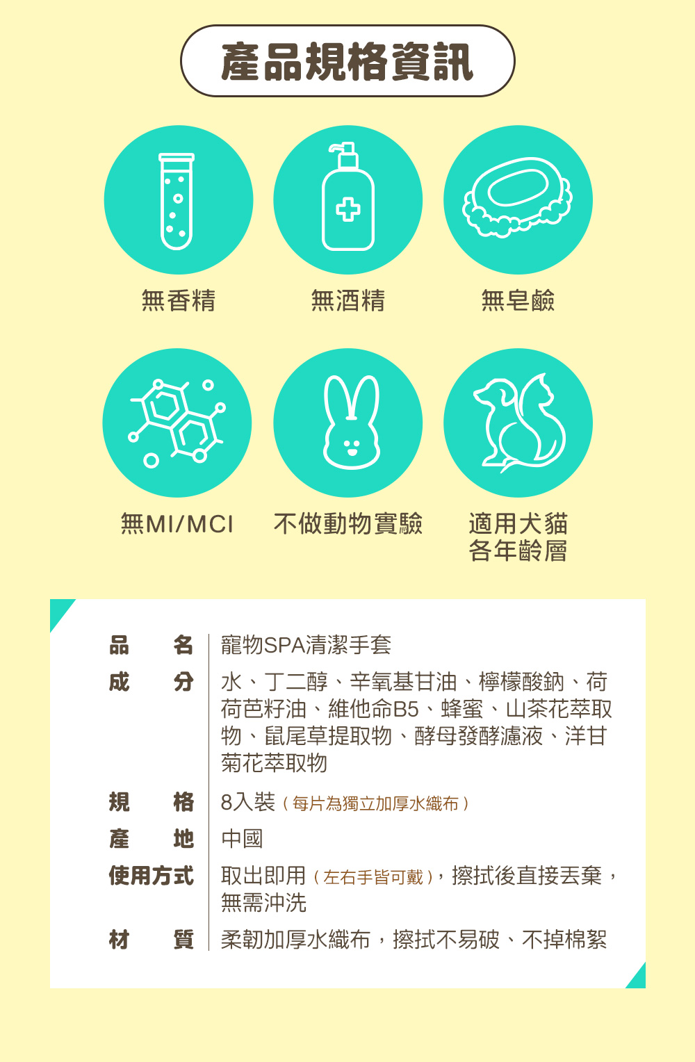 我們的寵物SPA清潔手套,一包內含8入,方便又實用。