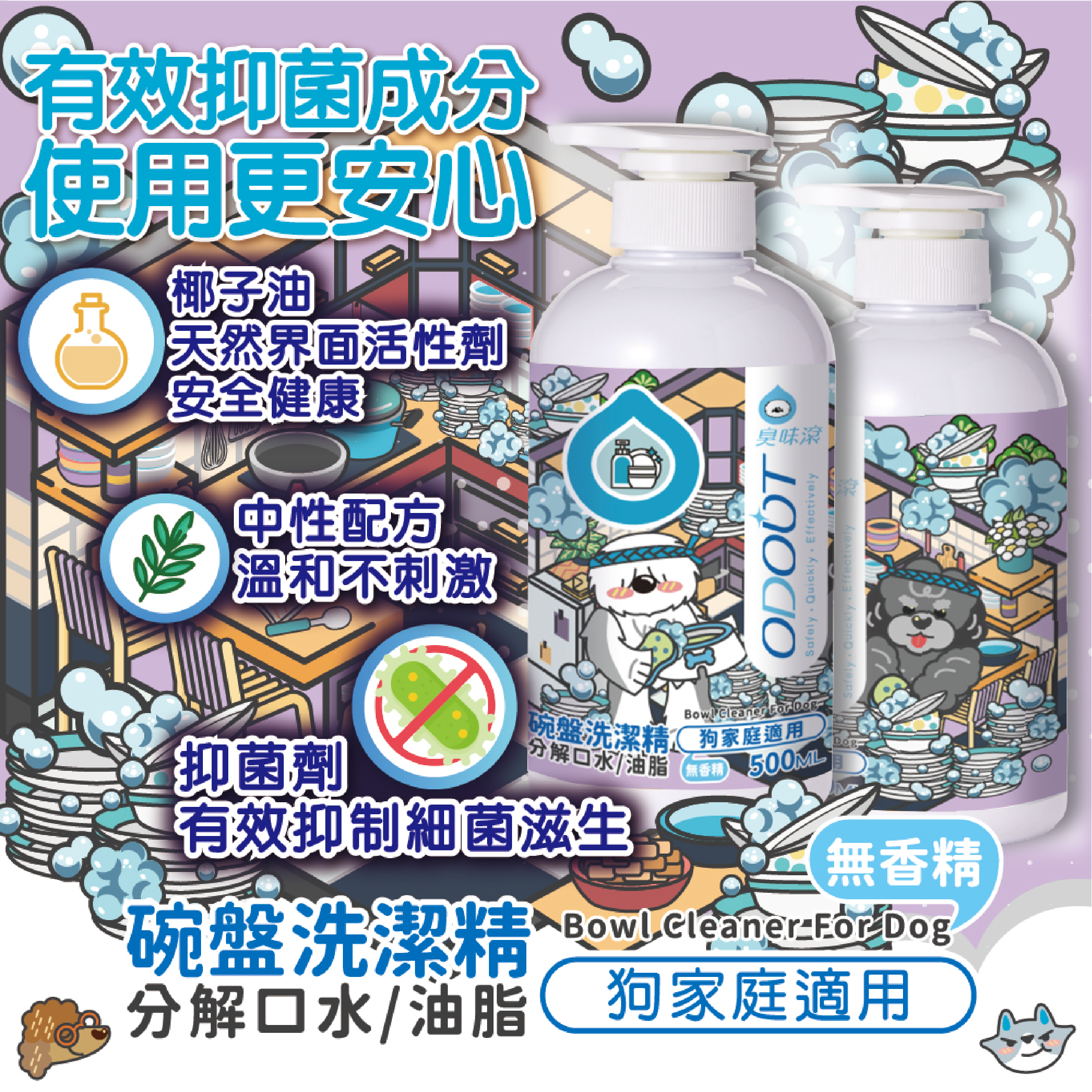 【臭味滾】狗 洗碗精 500ml 分解口水生物膜・輕鬆沖淨