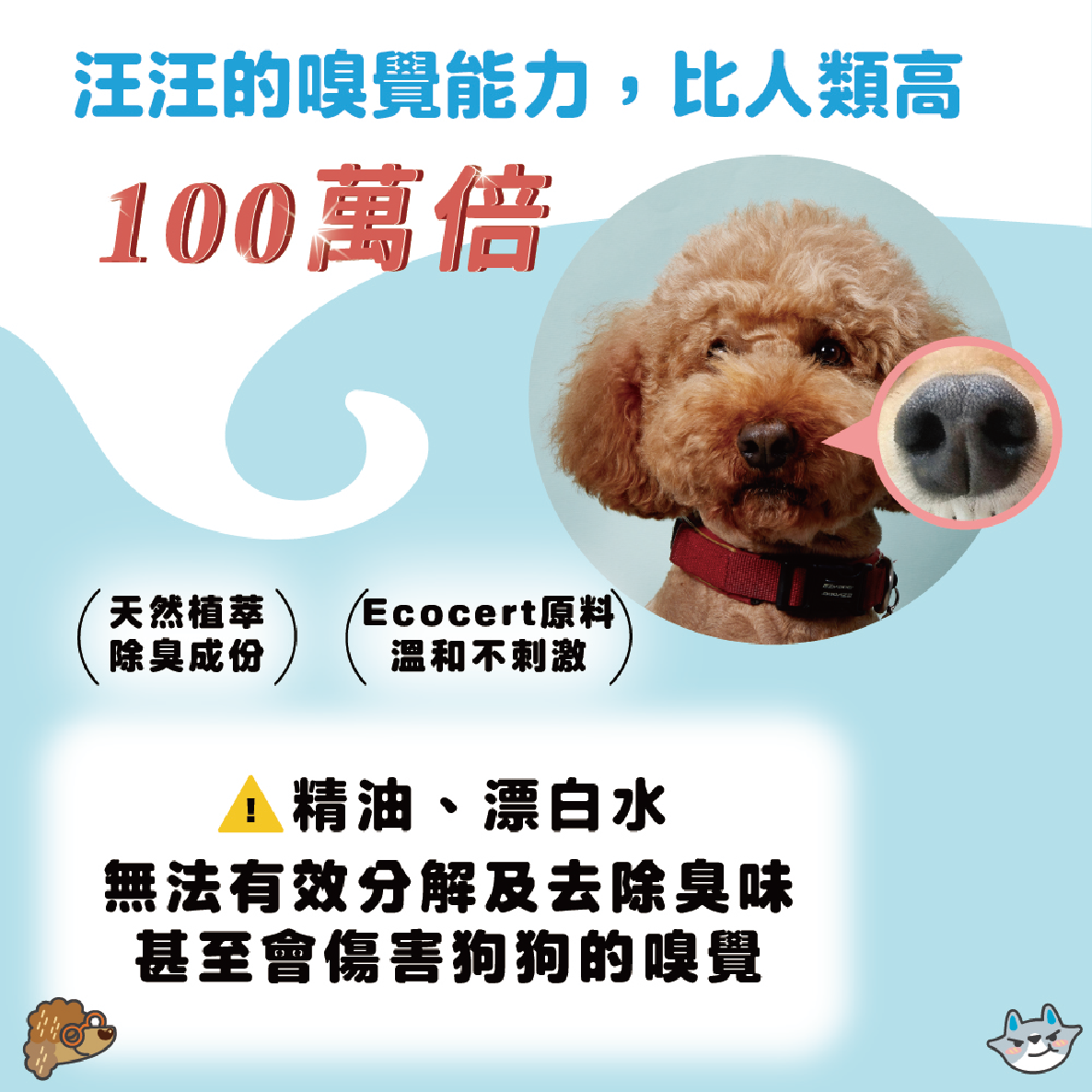 無味弱酸性,避免傷害汪汪嗅覺辨別能力