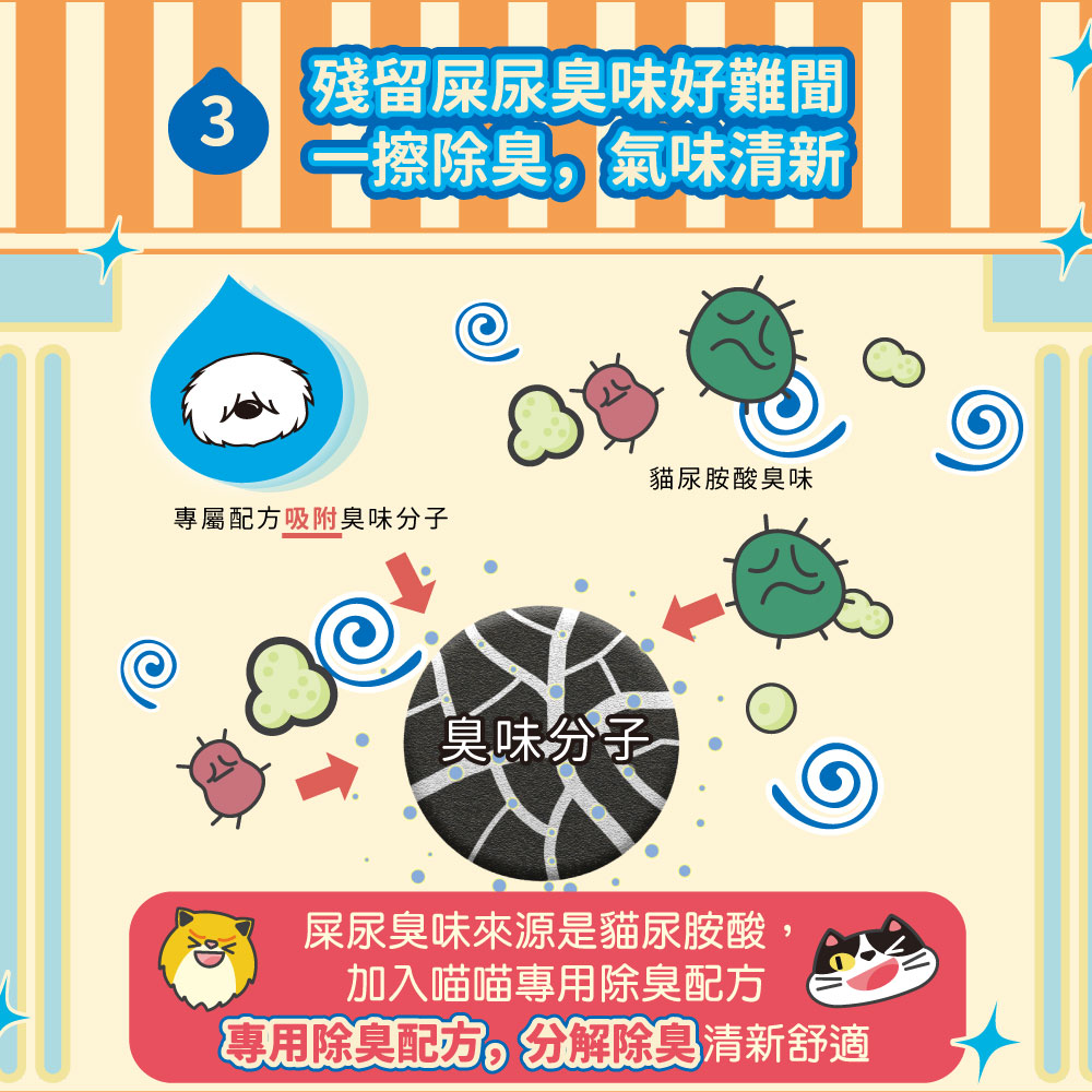 喵喵專用除臭配方,消除殘留屎尿臭味