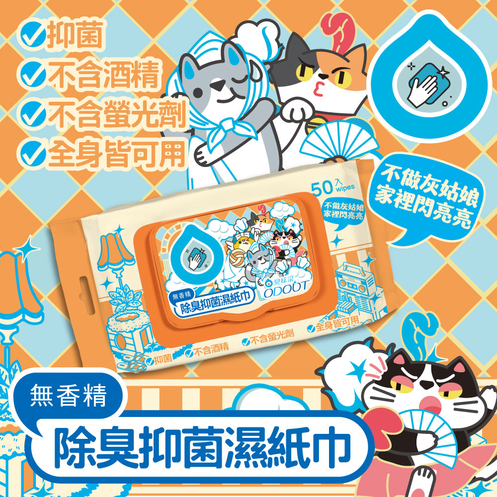 【臭味滾】貓 濕紙巾 50抽 溫和潔淨・低敏無香