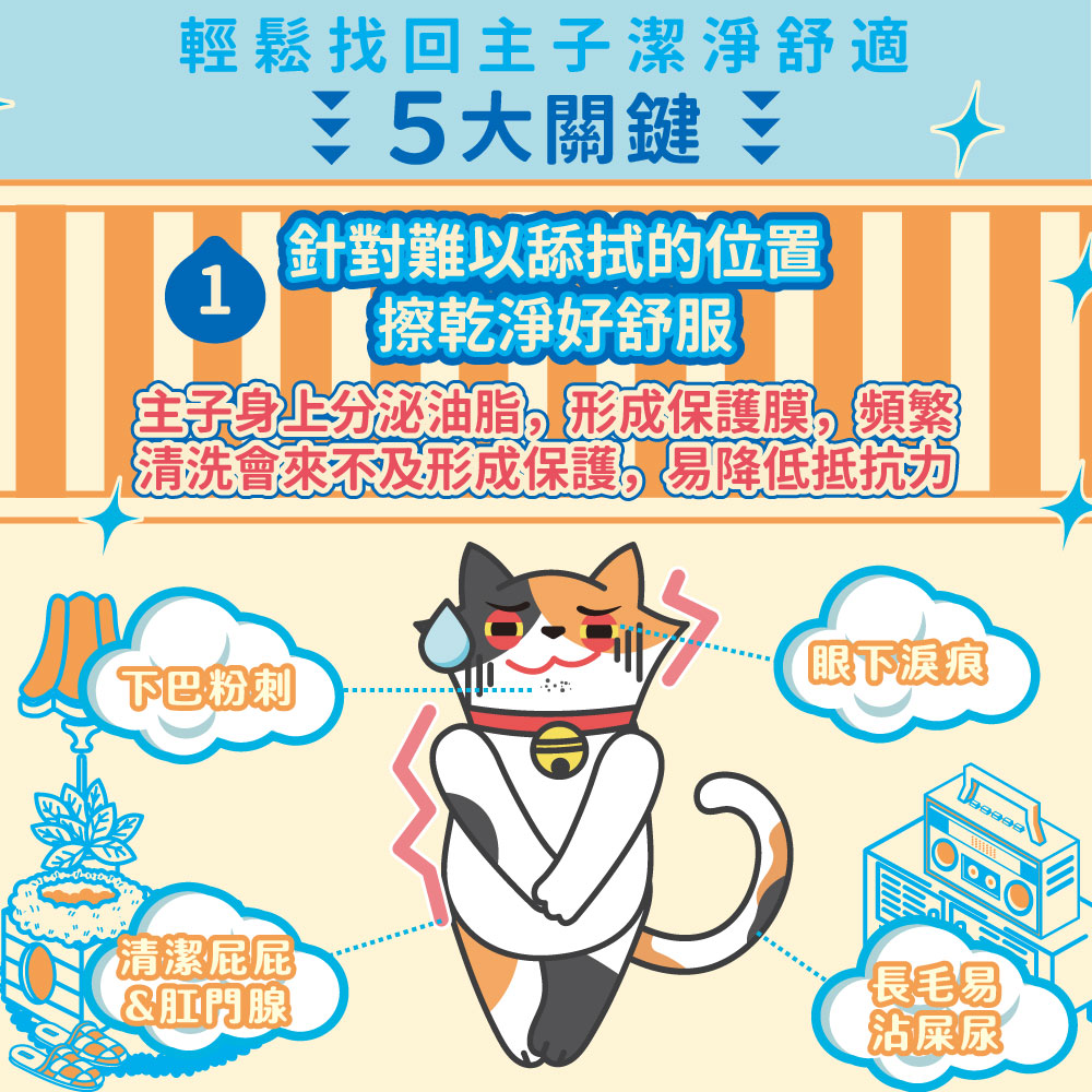 針對主子難以舔舐的位置,輕鬆擦乾淨