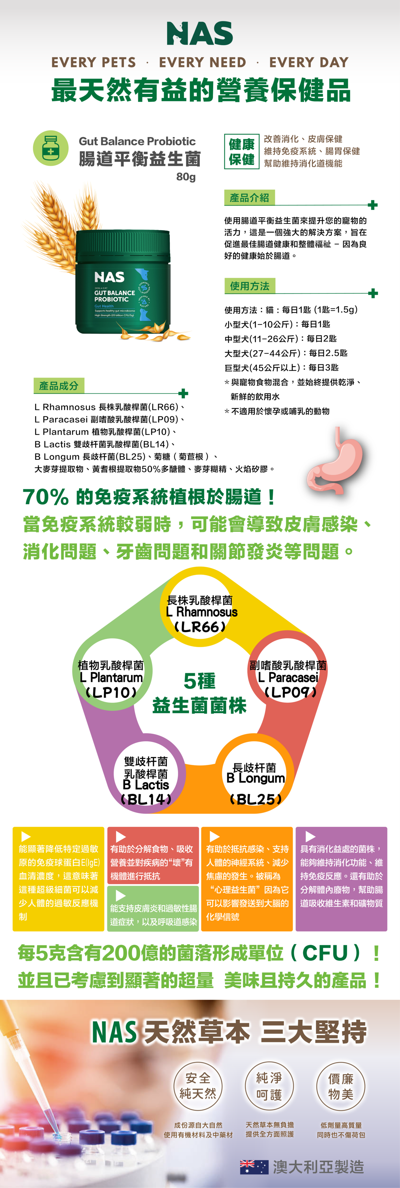 此外,添加了黃耆多醣和大麥芽提取物,為腸道的細菌提供不溶性和可溶性纖維來源,作為益生元食物,有助於維護腸道健康、促進整體福祉,